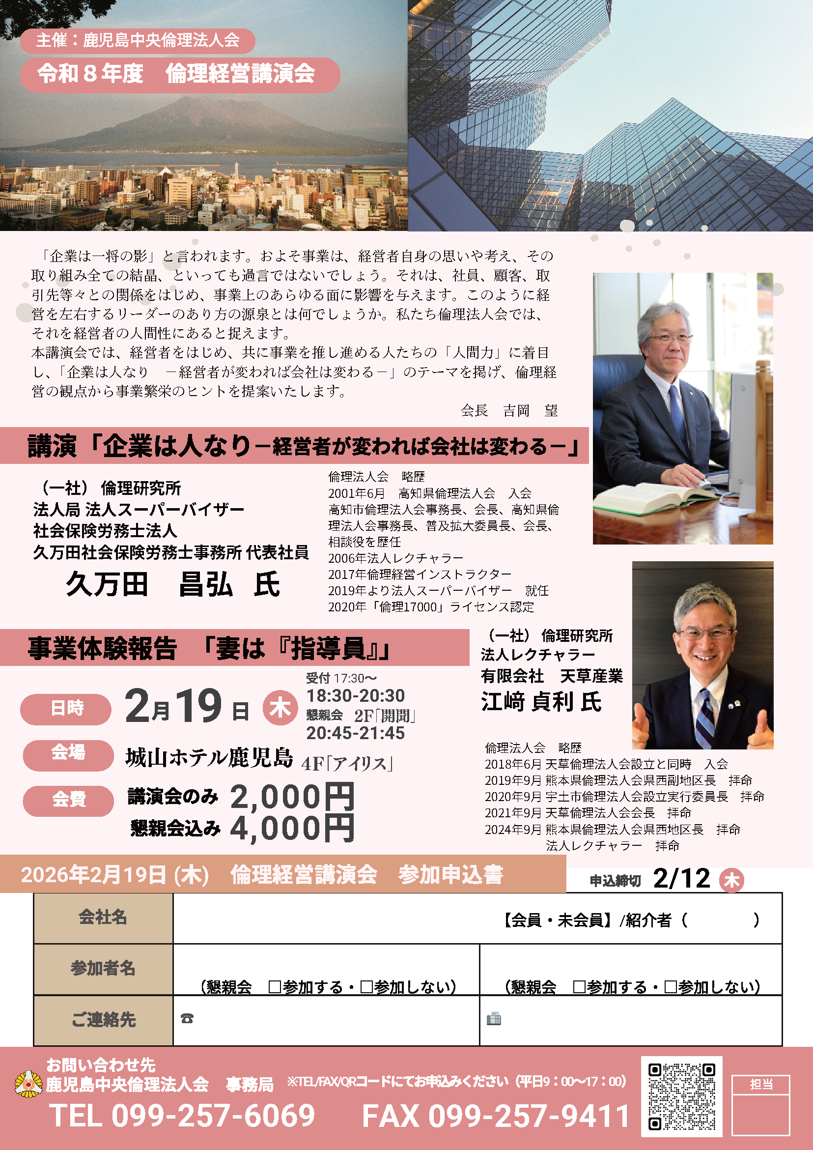 年に1回の鹿児島中央倫理法人会倫理経営講演会のご案内です。
